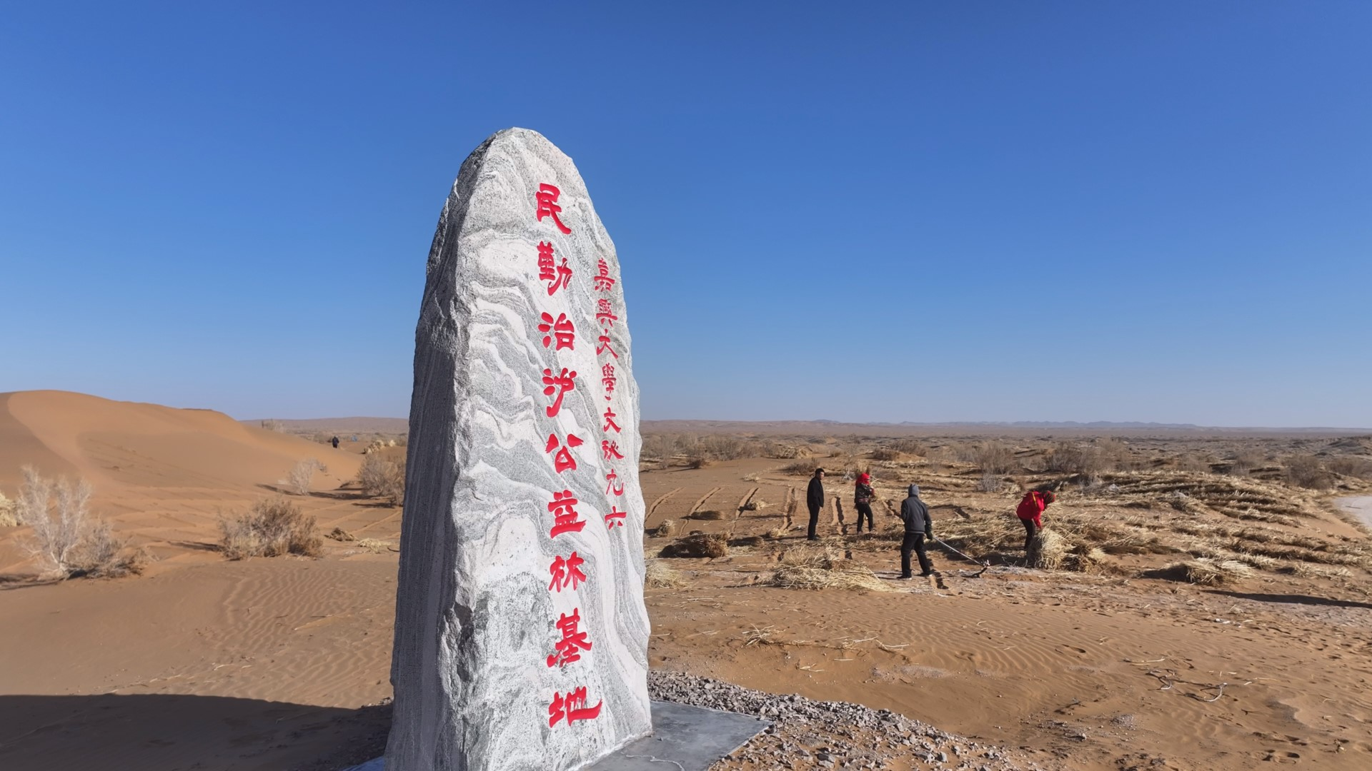 甘肃省民勤县位于河西走廊东北部,被巴丹吉林沙漠和腾格里沙漠三面包围,为有效遏制沙漠扩张,保护西北生态安全,2024年,当地政府发起“请到民勤种棵树”倡议,2025年又将个人种树活动提升至团体种树活动。我院文秘96班校友积极响应,在班主任杨硕林老师和班级同学焦兴慧、欧阳立华、朱云莉等积极组织下,以班集体名义参加活动。文秘96班师生共出资18万元,在民勤县的腾格里沙漠和巴丹吉林沙漠交汇处捐建了100亩治沙公益林基地。欧阳立华捐款最多,金额逾半。