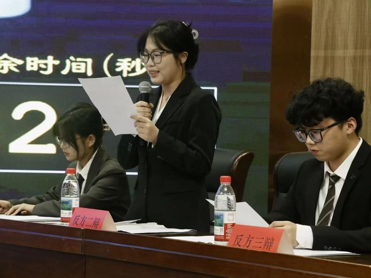 经过前期初赛、复赛的层层选拔,共有两支队伍从十二支参赛队伍中脱颖而出,会师决赛。双方围绕辩题展开激烈交锋,以严密的逻辑、扎实的论证和流畅的表达,充分展现了文法学子的思辨能力与青春廉韵。最终,比赛评选出冠、亚、季军及优秀辩手,并举行颁奖仪式。宋军飞校友、陆雨辰律师、唐永梅老师、步珏良老师分别为获奖个人和队伍颁奖。