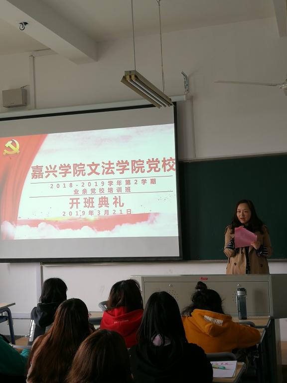 3月21日下午,文法学院第38期业余党校培训班开学典礼在梁林校区一号楼409教室举行。学院党委委员、学工办主任兼团委书记虞岚、学院党务秘书唐涛出席开学典礼。典礼由唐涛主持。