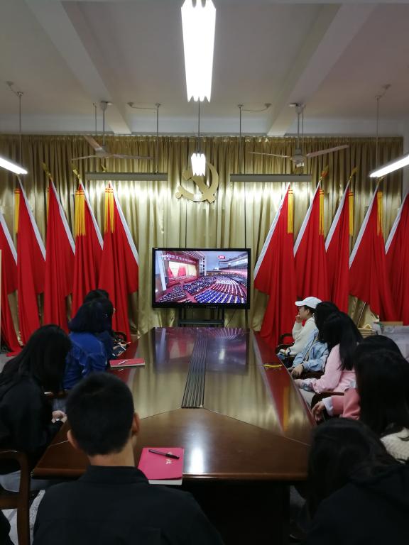 2019年4月30日上午10点30分,纪念五四运动100周年大会在北京人民大会堂隆重举行。文法学院教职工党员和部分学生党员代表在学院党员之家集体观看了纪念五四运动100周年大会直播,认真聆听习近平总书记在大会上发表的重要讲话。