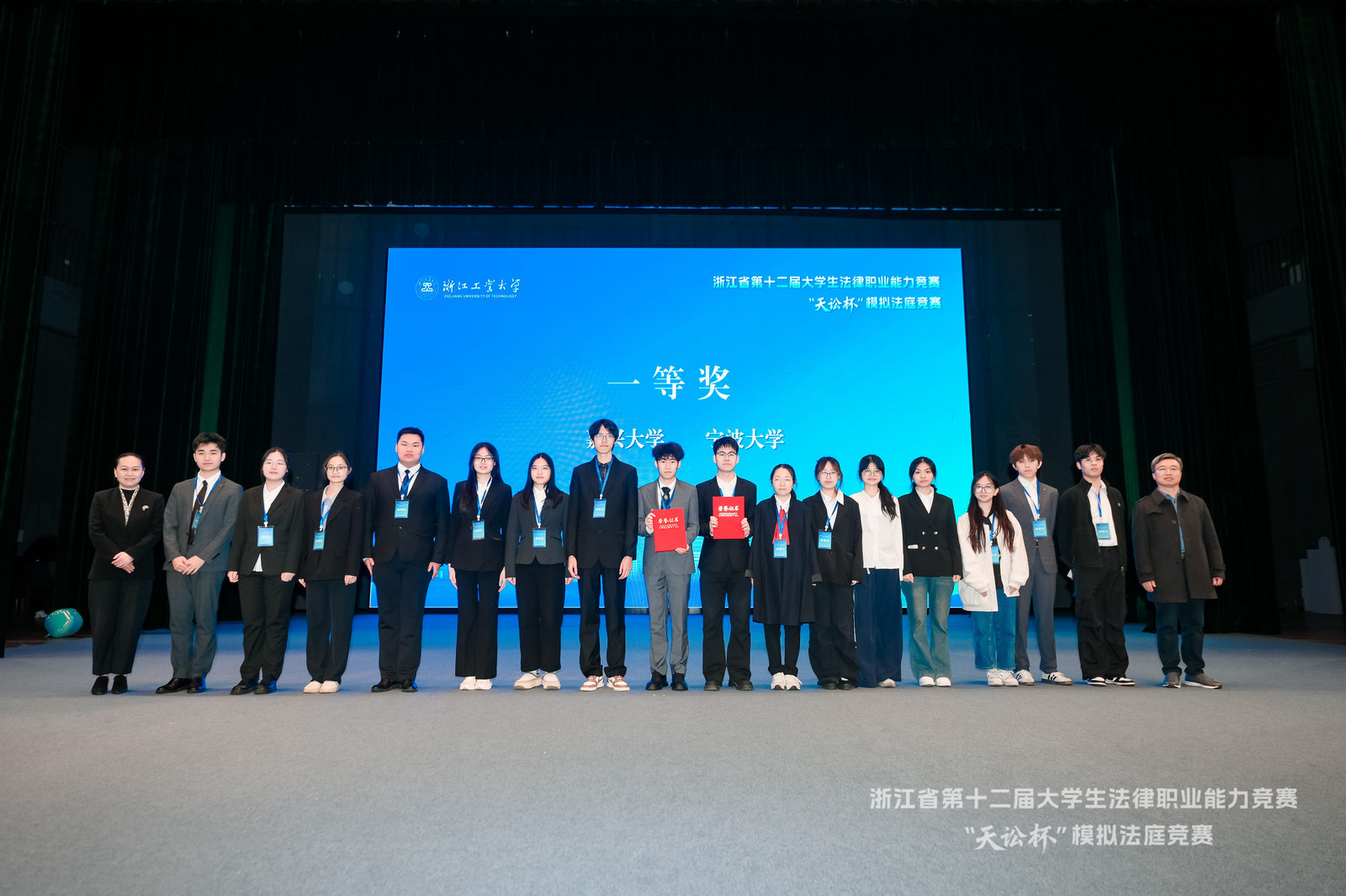 11月21日至23日,在浙江省第十二届大学生法律职业能力竞赛“天讼杯”模拟法庭比赛中,我校代表队获得一等奖,嘉兴大学荣获优秀组织奖,这是我校在省模拟法庭比赛中取得的历史性突破。